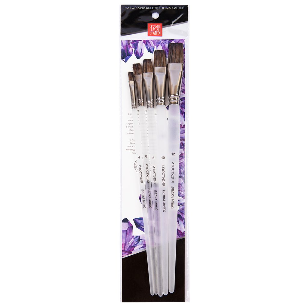 Набор кистей Аква-колор Изостудия белка микс IZO-MIX-02-05 5 шт. длинная ручка плоские № 4, 6, 8, 10, 12