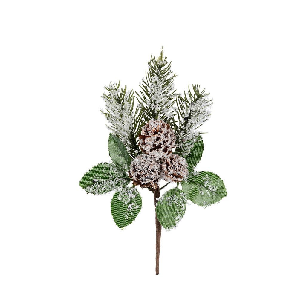 Blumentag VDD-65 Веточка декоративная заснеженная с ягодами и шишкой 6 х 1 шт. 16 см 01
