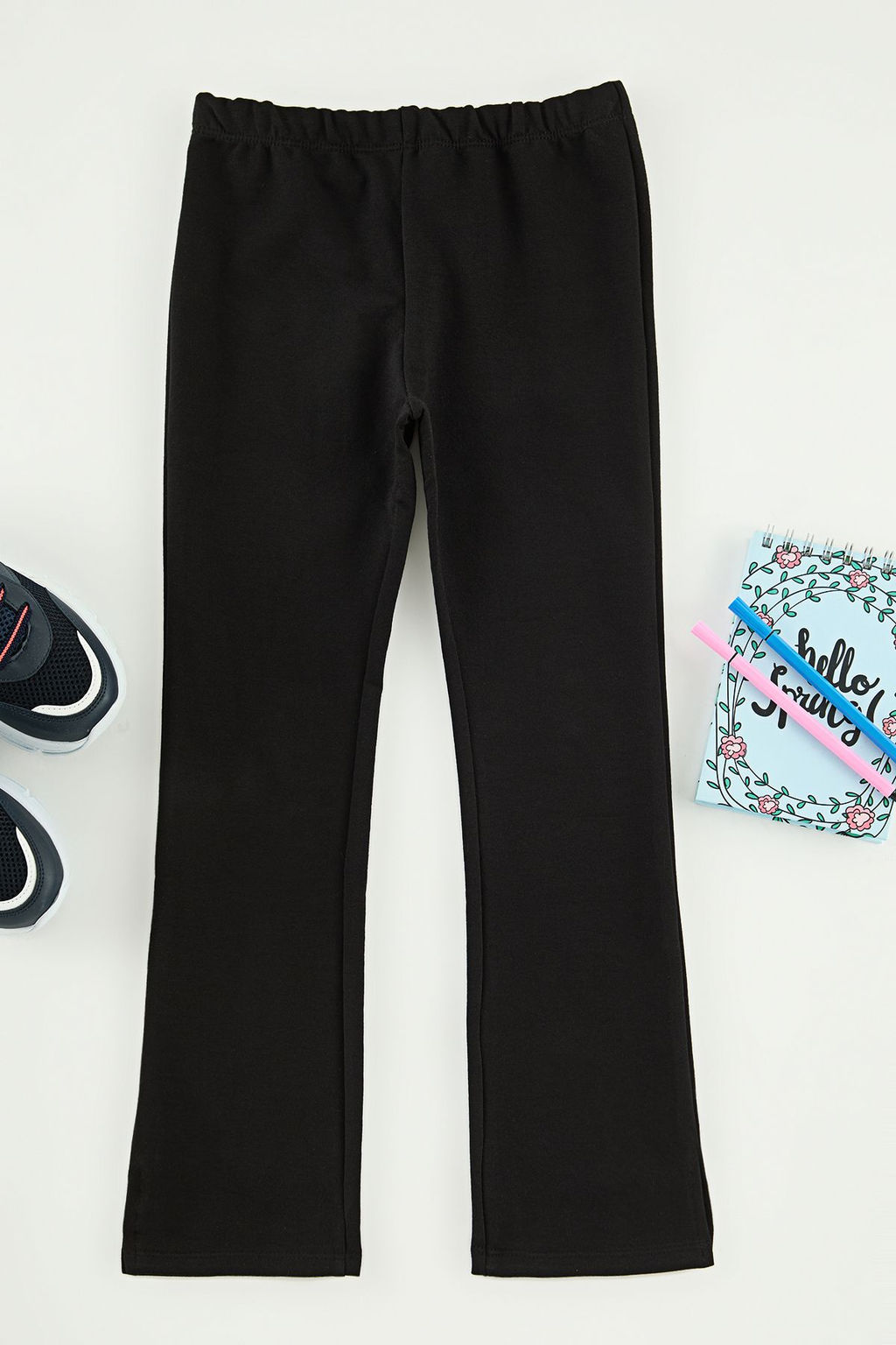 Siyah K?z Cocuk Flare Paca Y?rtmacl? Duz Orme Tayt TKDAW25PL00005