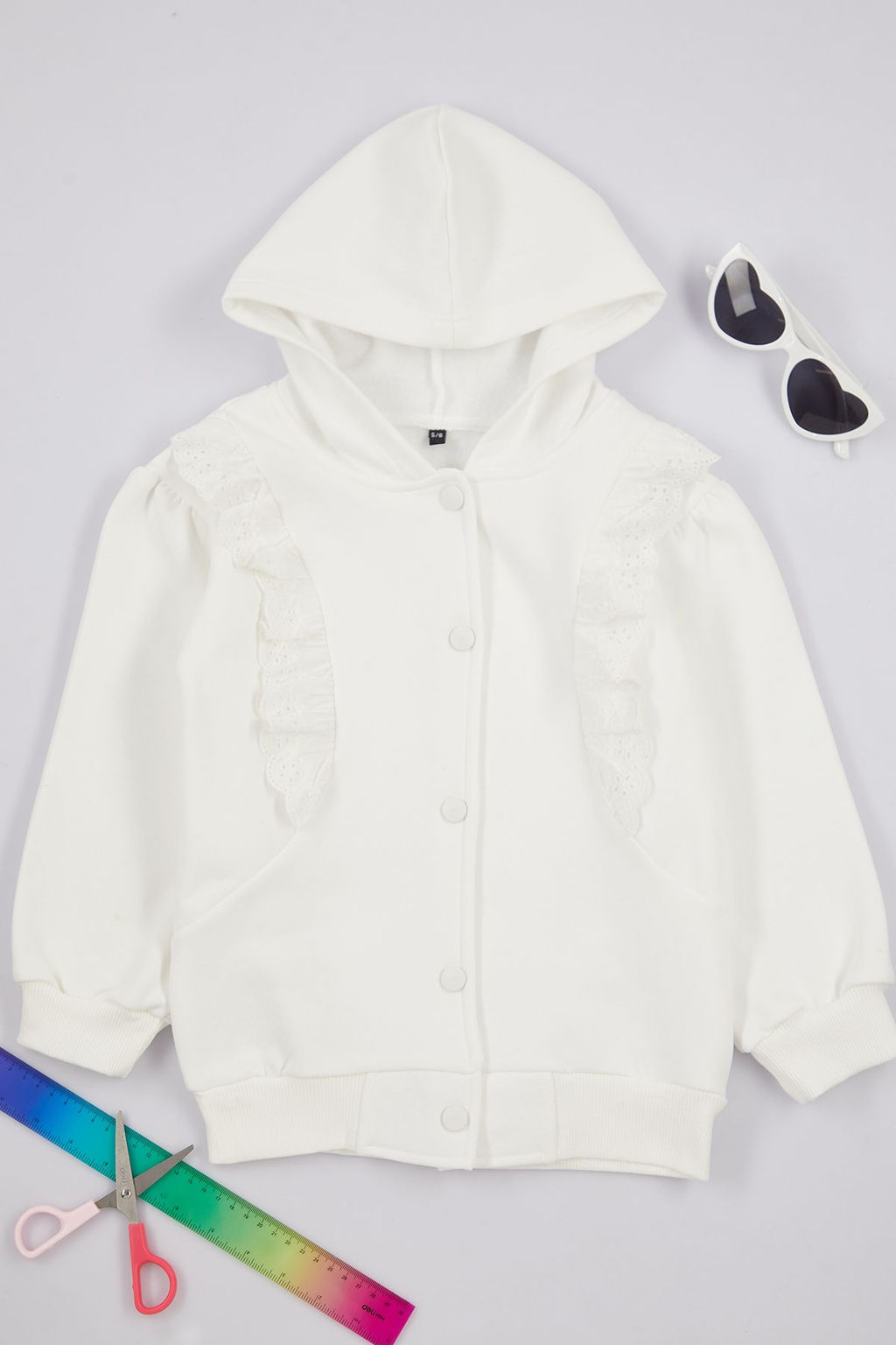 Ekru K?z Cocuk F?rf?r Detayl? Kapusonlu Pamuklu Orme H?rka TKDAW25HI00004