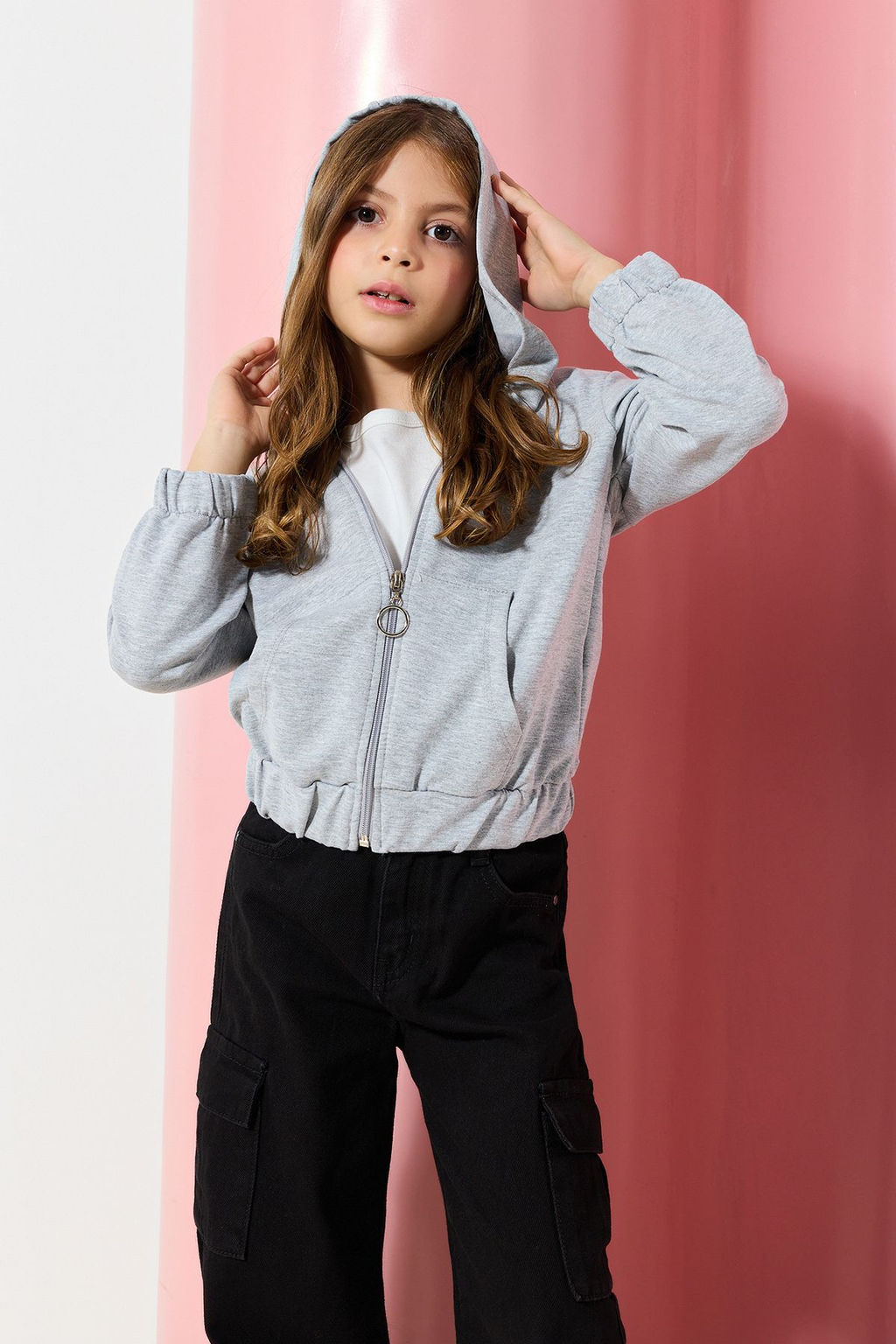 Gri Melanj Unisex Kapusonlu Pamuklu Fermuarl? Orme H?rka TKDAW25HI00001