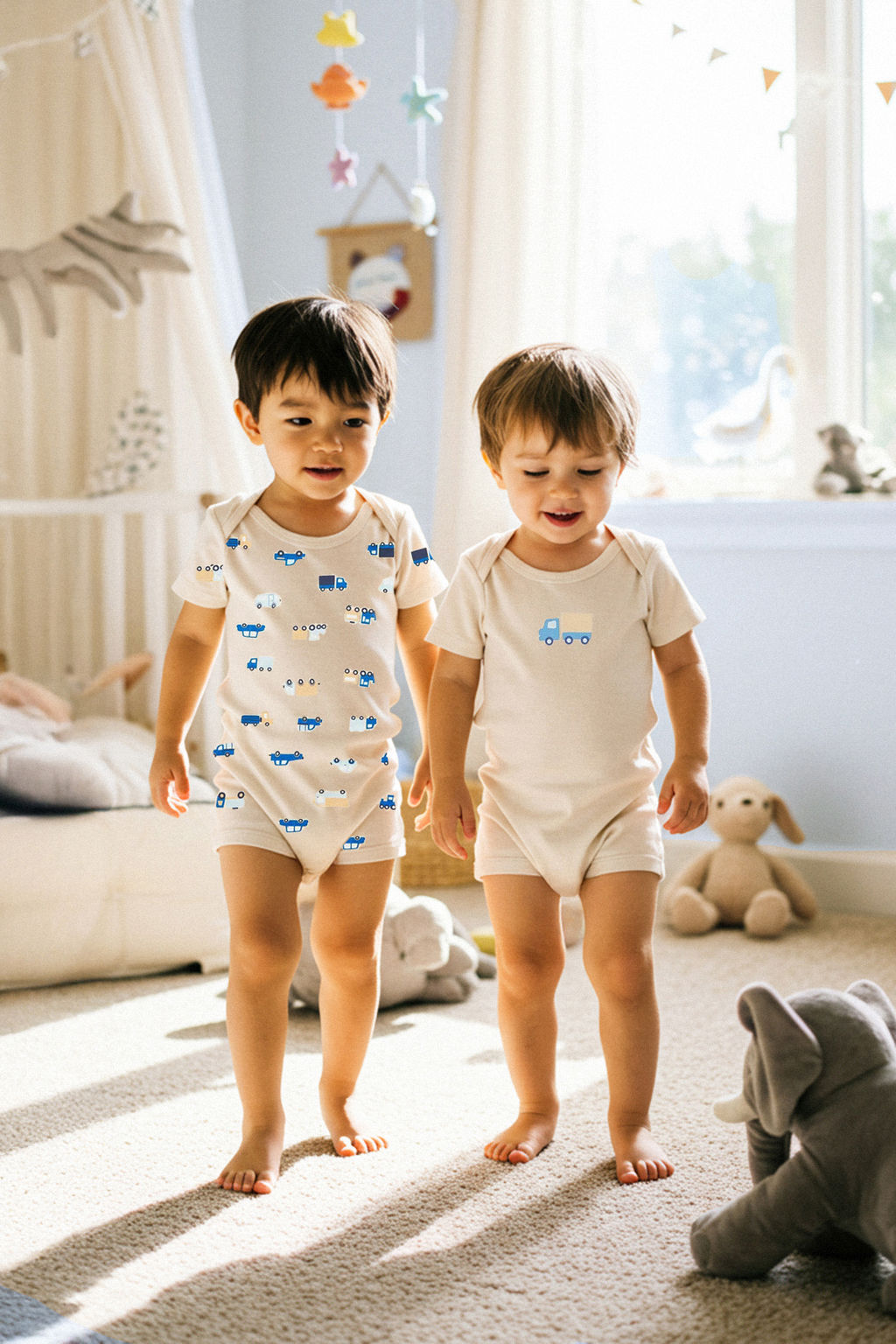 Turuncu Pamuklu 2li Araba Bask?l? K?sa Kol Erkek Bebek Orme Tulum TKDSS25TU00017