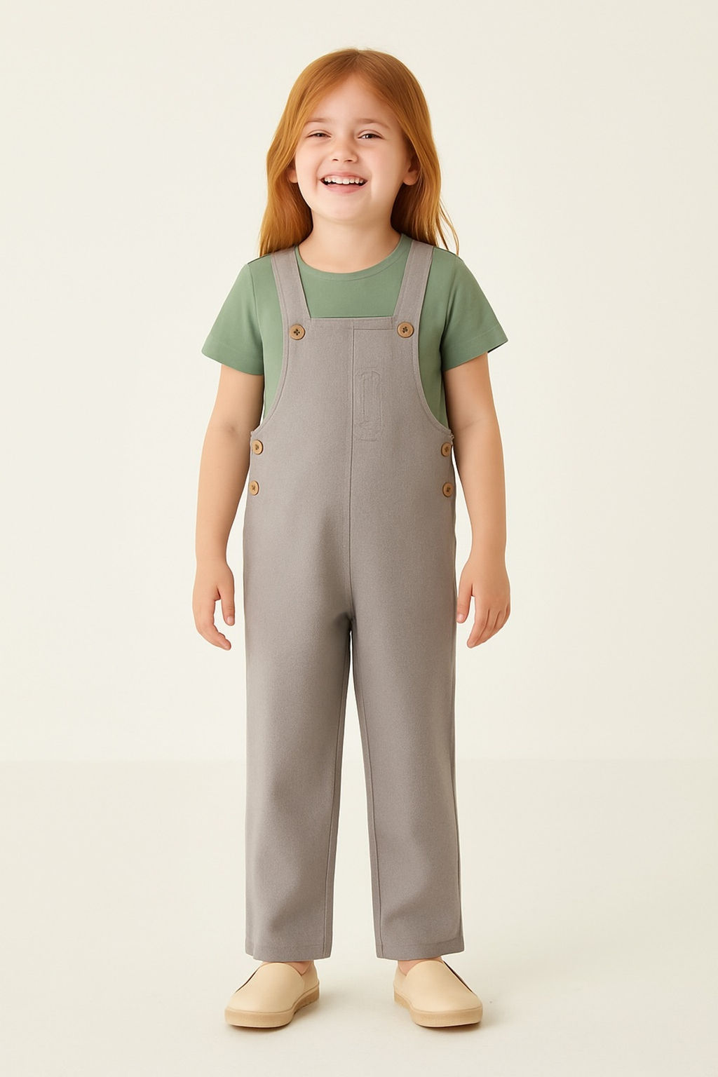 Gri K?z Cocuk Basic Ask?l? Uzun Dokuma Salopet TKDSS25SE00000