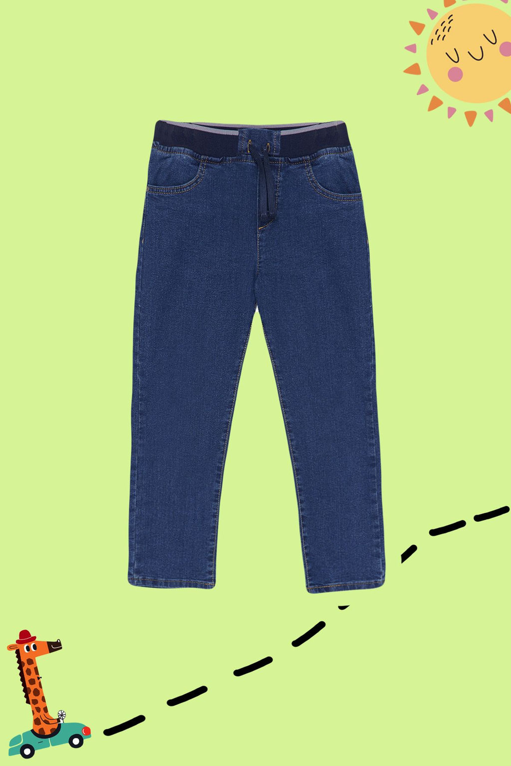 Erkek Cocuk Koyu Mavi Beli Lastikli Esnek Skinny Denim Pantolon Jean TKDSS24PL00014