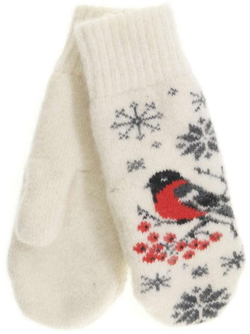 Варежки женские "Снегирь и снежинки" КРУГ 3472-2