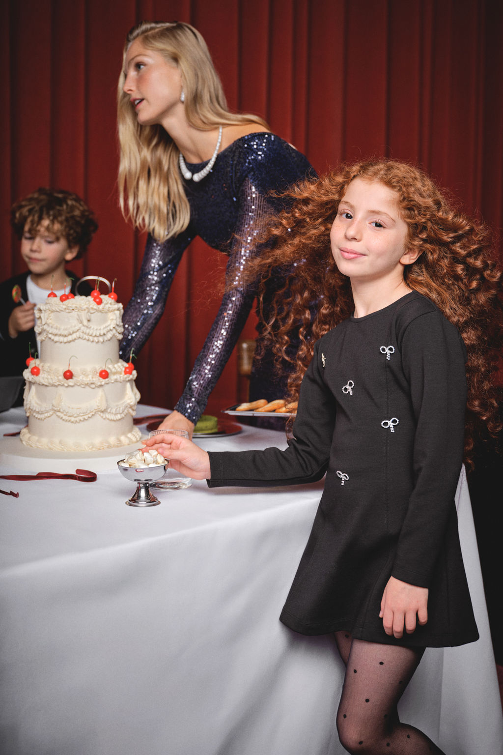Siyah Fiyonk Detayl? Maxi Boy K?z Cocuk Dokuma Y?lbas? Elbisesi TKDAW26EL00012