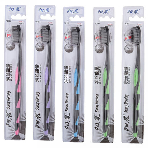 Зубная щетка 18,5х1,2х1,6см, угольная мягкая щетина, д/ворсинок - 0,18мм, длина ворсинок - 11мм, в блистере (Китай) мин.заказ 30шт