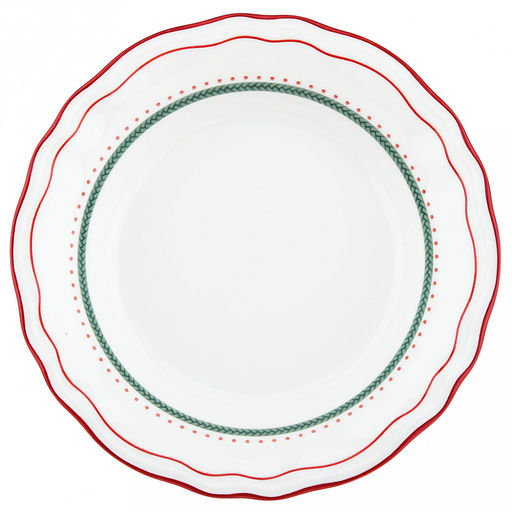 "Карельская брусника" Тарелка глубокая фарфоровая д180мм, h35мм, 400мл, с деколью, отводка, волнистый край, белый (Китай)