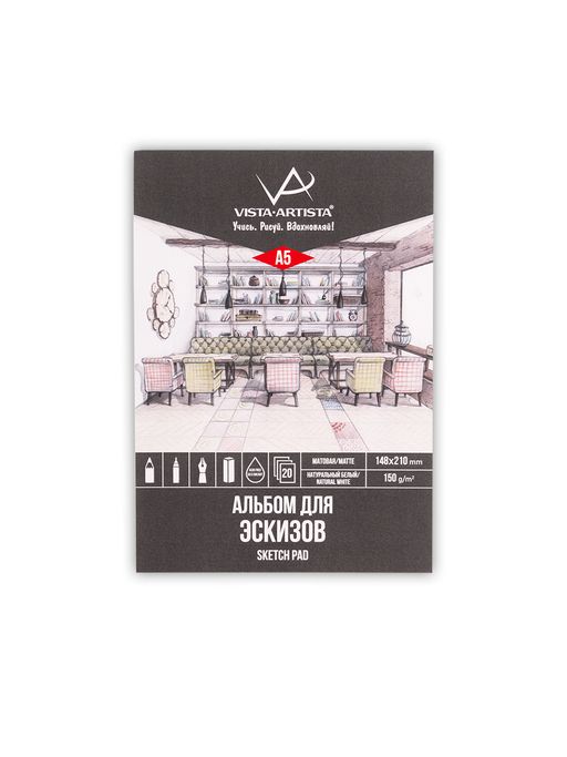 VISTA-ARTISTA DMN-A5 Альбом для эскизов 150 г/м2 A5 14.8 х 21 см склейка с одной стороны 20 л. Интерьеры. Столовая