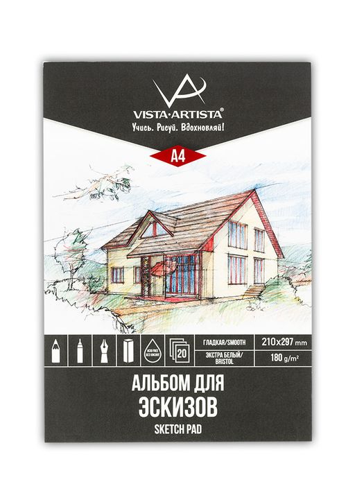 VISTA-ARTISTA DSBS-A4 Альбом для эскизов 180 г/м2 A4 21 х 30 см склейка с одной стороны 20 л. Бристоль/Bristol paper