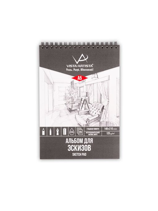 VISTA-ARTISTA DSN-A5 Альбом для эскизов 120 г/м2 A5 14.8 х 21 см на спирали 20 л. Интерьеры. Гостиная