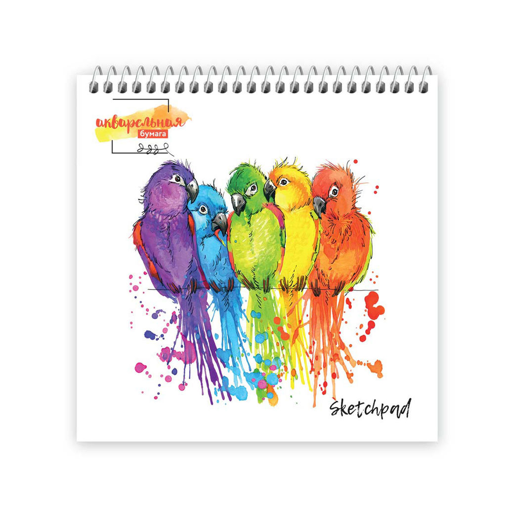 Аква-колор IBWS-2020 Изостудия Альбом для рисования (скетчпад) с акварельной бумагой 100% целлюлоза 200 г/м2 20 х 20 см на спирали 20 л. 02_попугаи среднезернистая