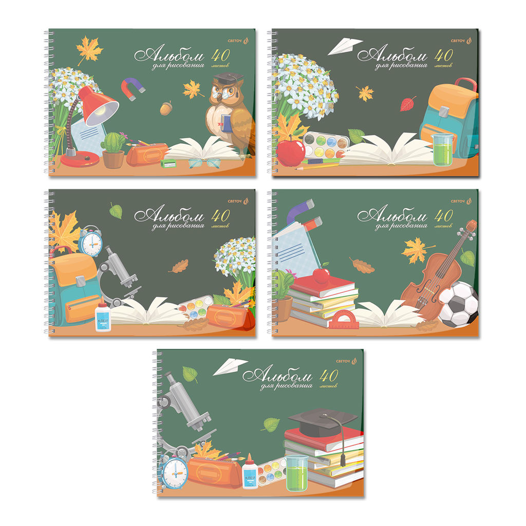 Светоч А207 Альбом для рисования, с пластик. обложкой 180 мкм., цветной титул лист 100 г/м2 A4 29 х 20.5 см 40 л. на гребне 5 шт. 01541 Школьный уголок