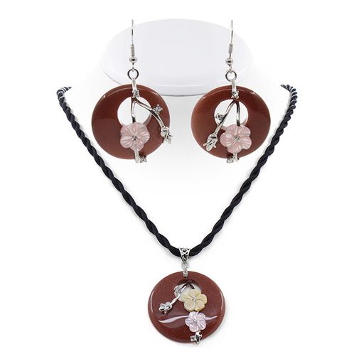 Набор Кулон и серьги "Весенние цветы" коричневый авантюрин