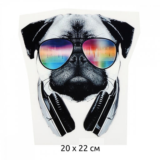 Термотрансфер арт.TBY.1303 Мопс и наушники 20х22см, уп.10шт