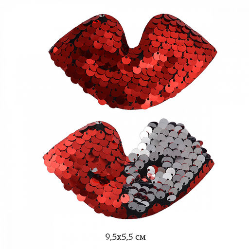 Аппликации пришивные с пайетками арт.TBY.2190 Губы 9,5х5,5см цв.красный уп.20шт