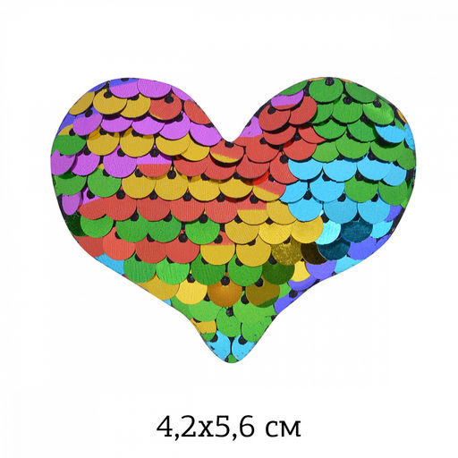 Аппликации пришивные с пайетками арт.TBY.2162 Сердце мульти 4,2х5,6см, уп.10 шт.