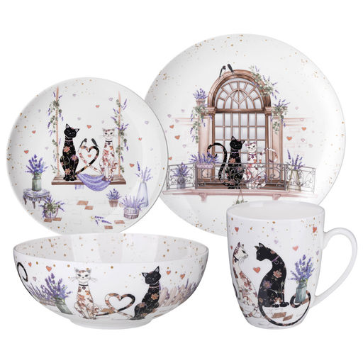 НАБОР ПОСУДЫ ОБЕДЕННЫЙ LEFARD ЛАВАНДОВЫЕ КОТЫ НА 4 ПЕР. 16 ПР. (КОР=2НАБ.)