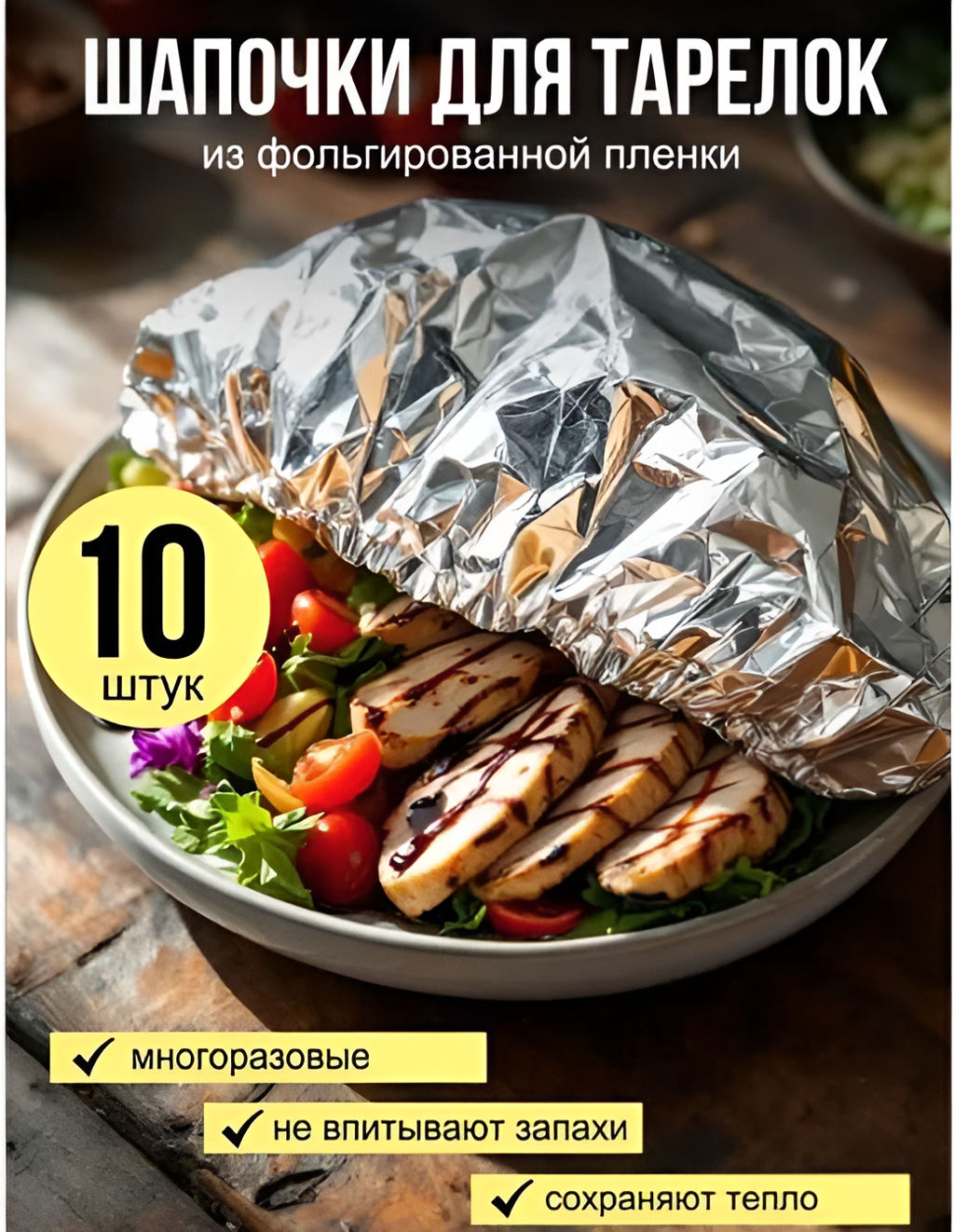 Фольгированные пакеты для тарелок на резинке Многоразовые и термостойкие, 10 штук, 33см