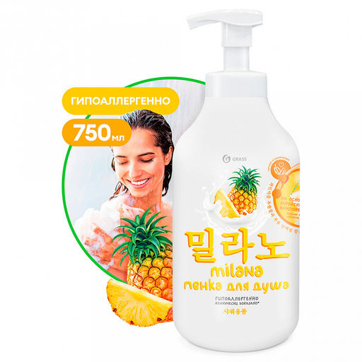 Гель-пенка для душа "Milana" 750мл, с экстрактом ананаса и молочными протеинами, гипоаллергенно, с дозатором