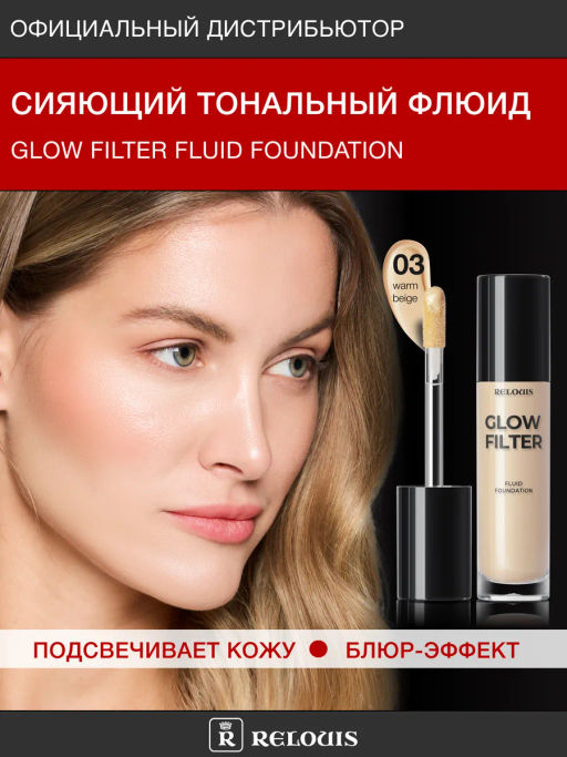 RELOUIS Флюид тональный Сияющий с эф.фильтра Glow Filter Fluid Foundation тон:03 Warm Beige