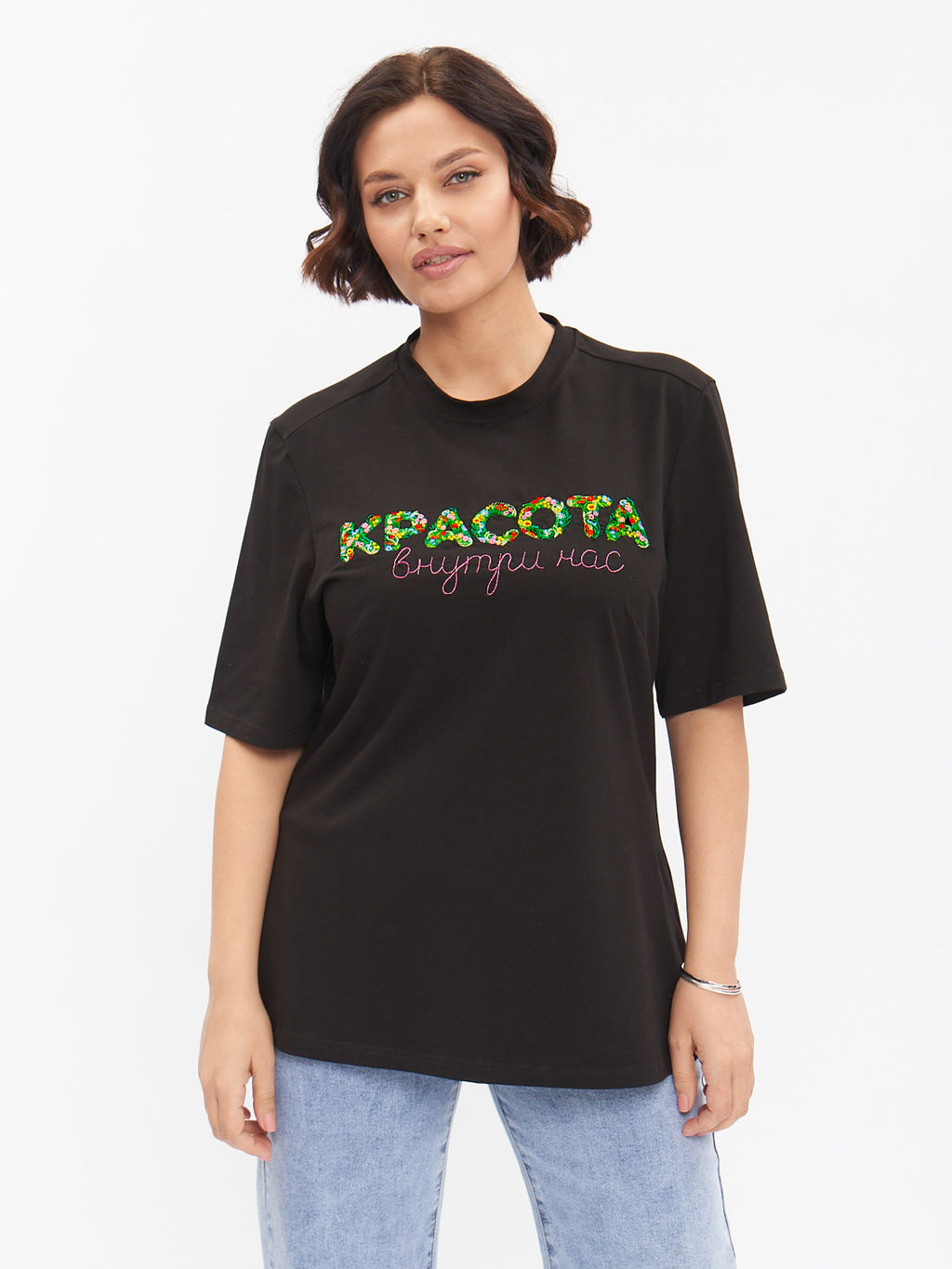 Футболка с вышивкой FU21602BLK01
