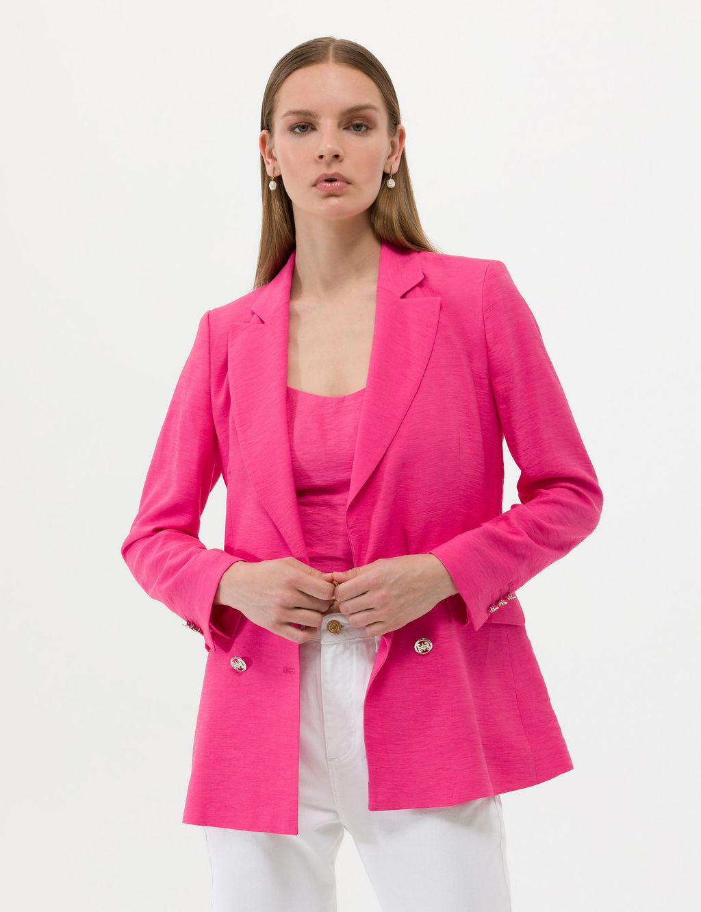 Pembe Kruvaze Slim Fit Ceket