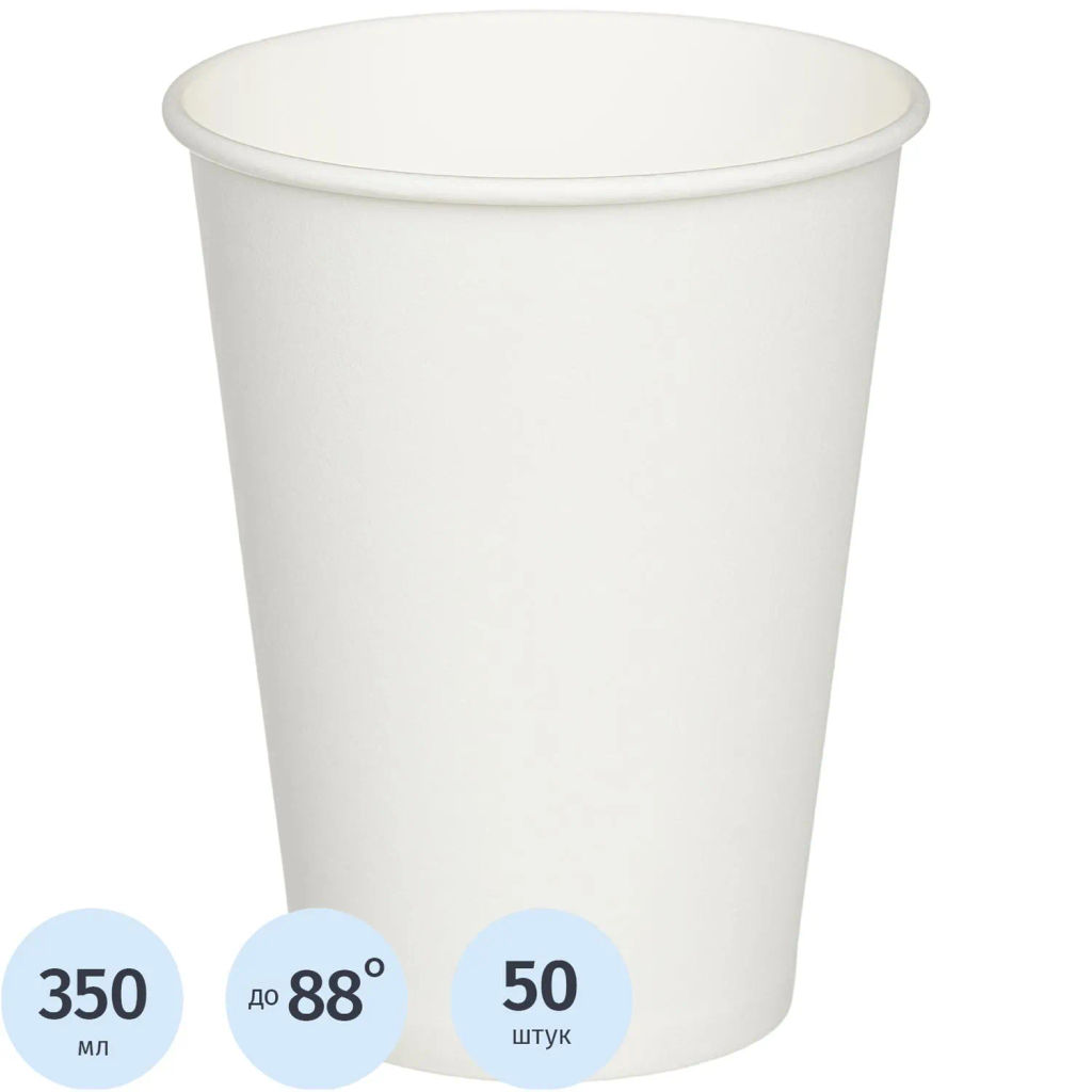 Стакан одноразовый бум. 1-сл d-90мм 350мл, белый, Комус 50шт/уп