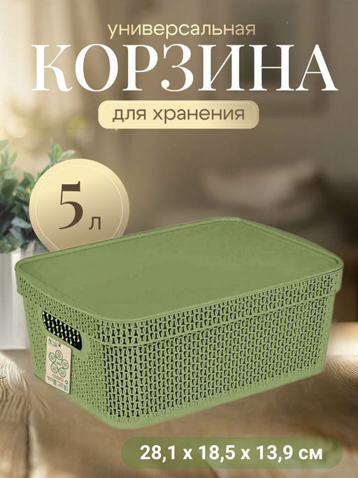 Корзина для хранения Keeplex Green Republic с крышкой 5л 28,1х18,5х13,9см полынь KL411311049