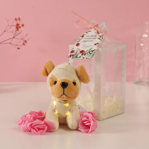 Набор подарочный Пёсик белый, мыльные розовые розы 5 шт., роса, 7?7?12 см
