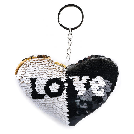 Цена за 2 шт. Брелок для ключей на кольце Пушистик. Сердечко с пайетками, на сумку, рюкзак, 10 см, белый