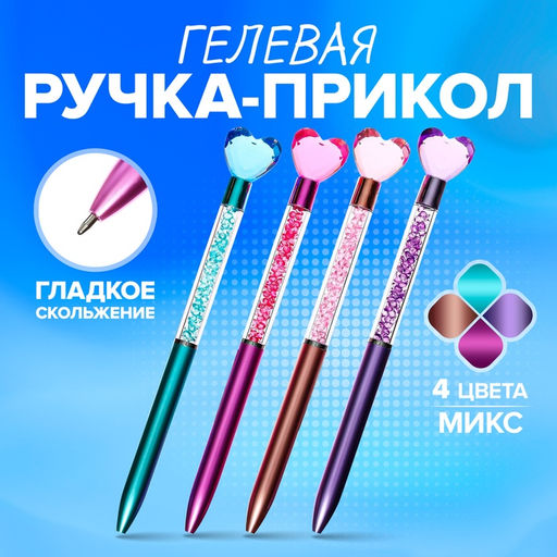 Цена за 48 шт. Ручка-прикол Блеск Сердце, гелевая, МИКС
