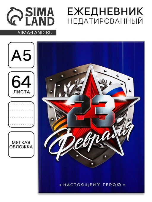 Ежедневник А5, 64 листа, недатированный, в точку А5, 64 листа С 23 февраля