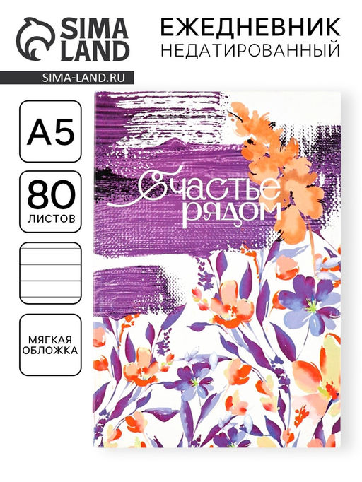Ежедневник в мягкой обложке А5, 80 листов Счастье рядом