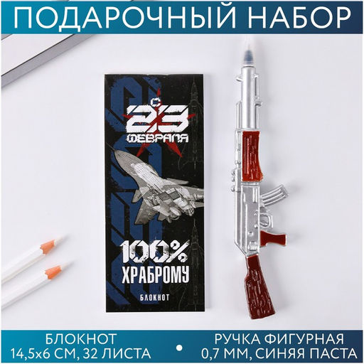Цена за 2 шт. Набор подарочный Настоящий мужчина, с 23 февраля!, блокнот 16 листов и ручка пластик