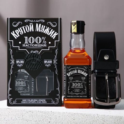 Подарочный набор Крутой мужик, гель для душа виски 250 мл, ремень, Чистое счастье