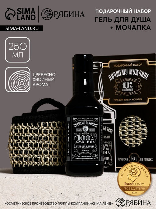 Подарочный набор Лучшему мужчине, гель для душа во флаконе виски, чёрный и мочалка лента, Чистое счастье
