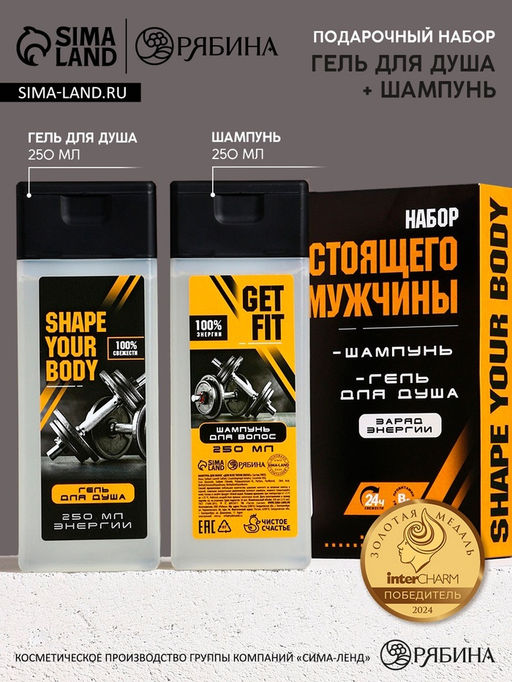 Подарочный набор Настоящий мужчина, шампунь для волос и гель для душа, 2?250 мл