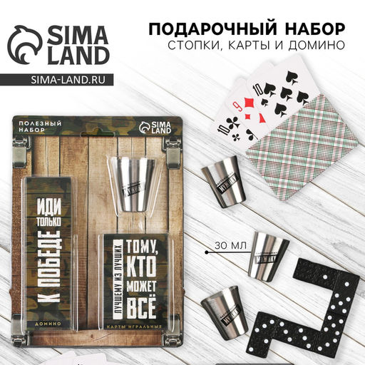 Подарочный набор Настоящему мужику, карты, домино, стопки 3 шт.
