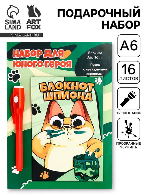 Подарочный набор: ручка с невидимыми чернилами и блокнот А6, 16 л. Кот