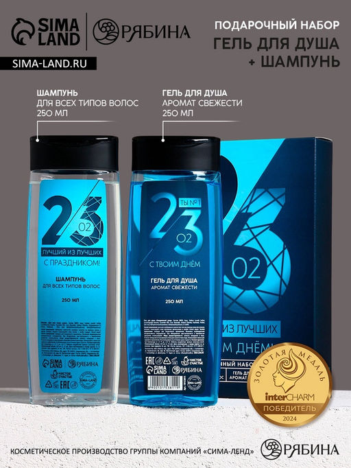 Подарочный набор 23 Февраля, гель для душа и шампунь для волос, 2?250 мл, HARD LINE
