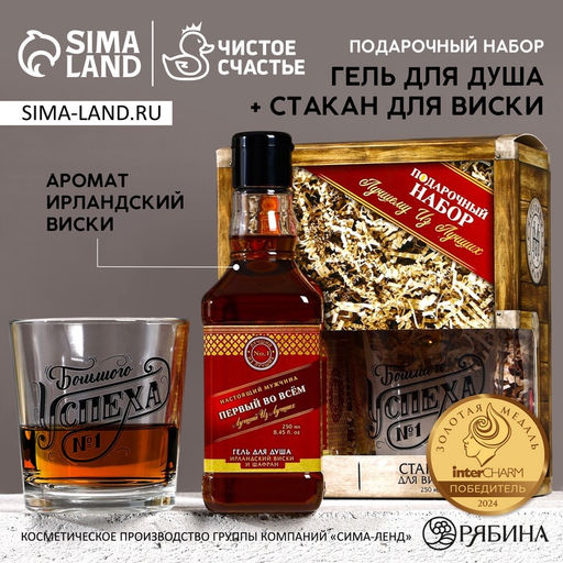 УЦЕНКА Набор Первому во всём, гель для душа, 250 мл и стакан для виски