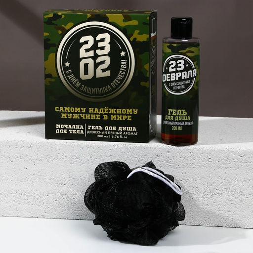 Подарочный набор 23 Февраля: гель для душа 200 мл и мочалка для тела, HARD LINE