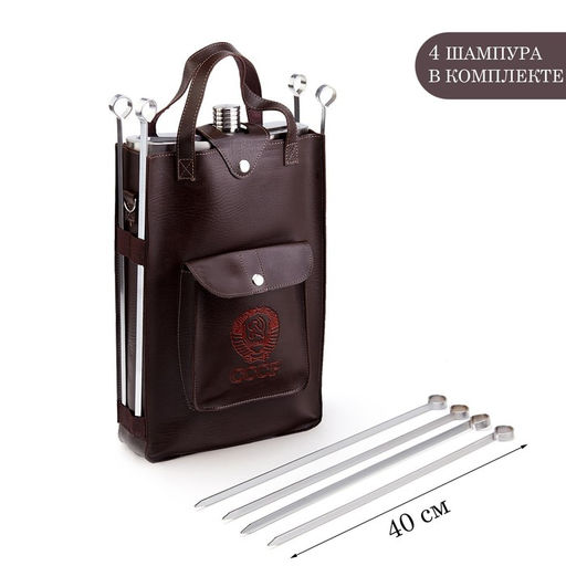 Фляжка СССР, нержавеющая сталь, чехол, 5.15 л, с 4 шампурами l-40 см