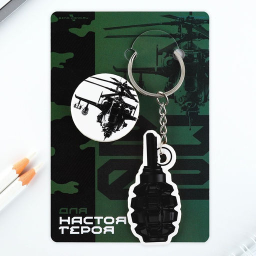 Цена за 2 шт. Значок и брелок на 23 Февраля Для настоящего героя, подарочный набор : 2 предмета