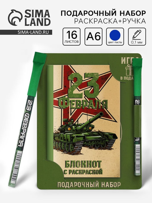Цена за 2 шт. Блокнот с раскраской А6 и шариковая экоручка 23 февраля! Танк