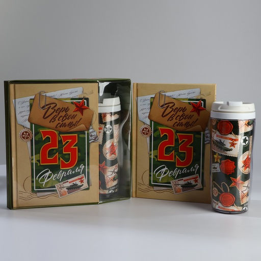 Подарочный набор 23 февраля, ежедневник в твердой обложке А5, 80 л, термостакан 350 мл