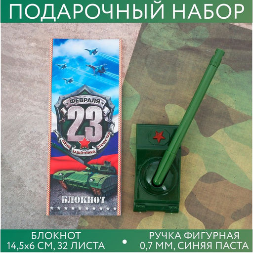 Подарочный набор С 23 февраля!, блокнот 16 листов и ручка пластик