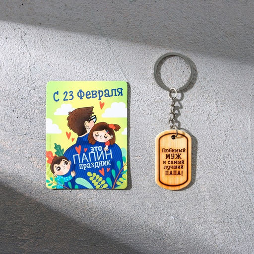 Цена за 2 шт. Магнит и брелок на 23 Февраля Любимый муж и самый лучший папа!, подарочный набор : 2 предмета