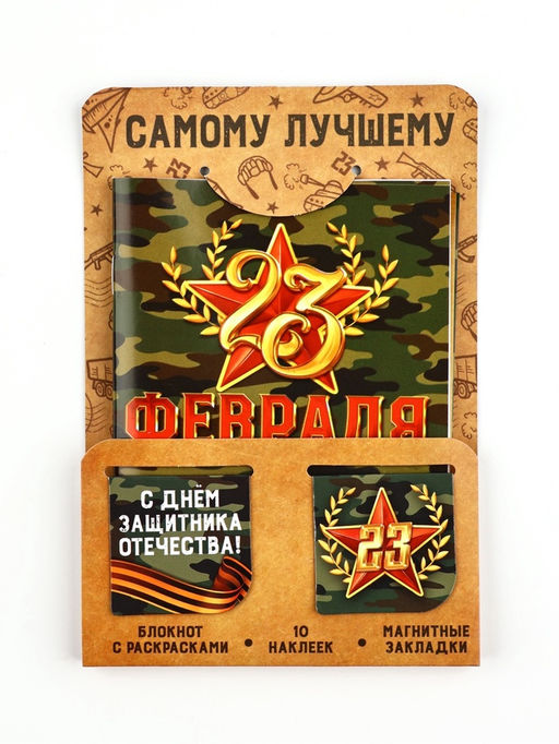Цена за 2 шт. Подарочный набор 23 февраля. С днём защитника отечества, блокнот А6, 32 листа, наклейки, магнитные закладки